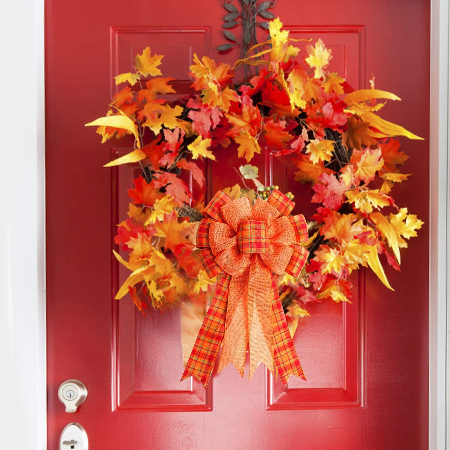 - Design Concept: The lattice pattern is wrapped in orange, which is distinct and three-dimensional. Orange is the color of autumn. Decorating the family with this bow can feel the joy of harvest.and our bows can also be reused, are portable and store easily. Each bow is pre-shaped, no need to DIY by yourself.