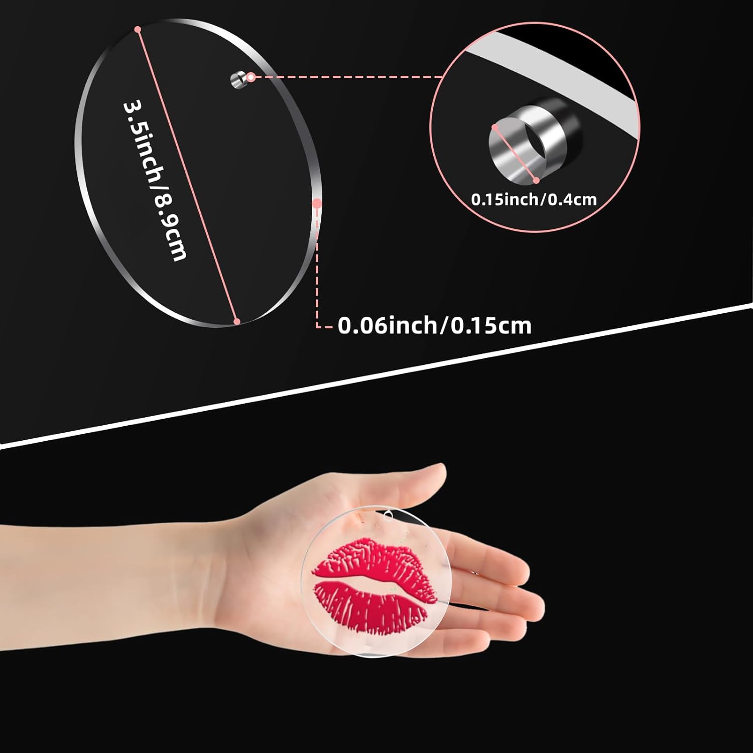 - Package Quantity:50 pieces 3.5" clear acrylic blanks round with 4 mm holes for easy hanging to make acrylic charms and clear craft ornaments