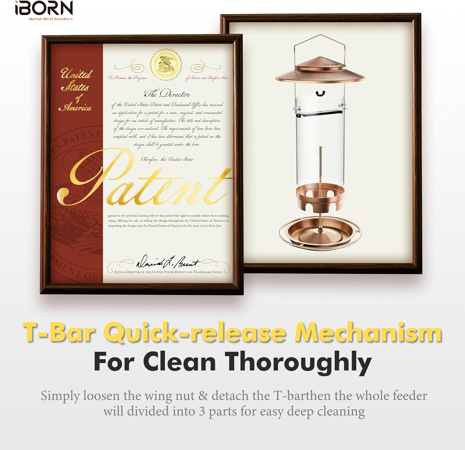- 【2.2lbs Large Capacity-Attracting More Birds Coming】Compare those mini sized birdfeeders, iBorn large 2.2lb capacity ensures a constant food supply that keeps birds lingering in your yard longer. As they recognize your feeder as a reliable dining spot, they'll naturally invite their feathered friends - turning your space into a lively bird social hub! Watch your garden transform into a vibrant avian gathering place with this worry-free wild bird feeders.