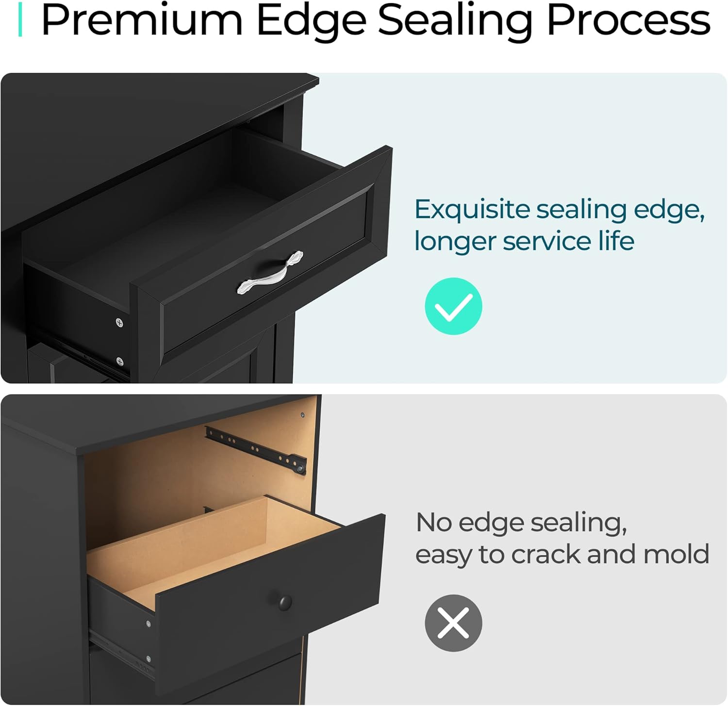 - [PREMIUN MATERIAL] - Crafted with CARB P2 & TSCA certified eco-friendly manufactured wood, we do care about your health. Exquisite sealing process gives the dresser a waterproof surface and smooth texture, making it long-lasting.