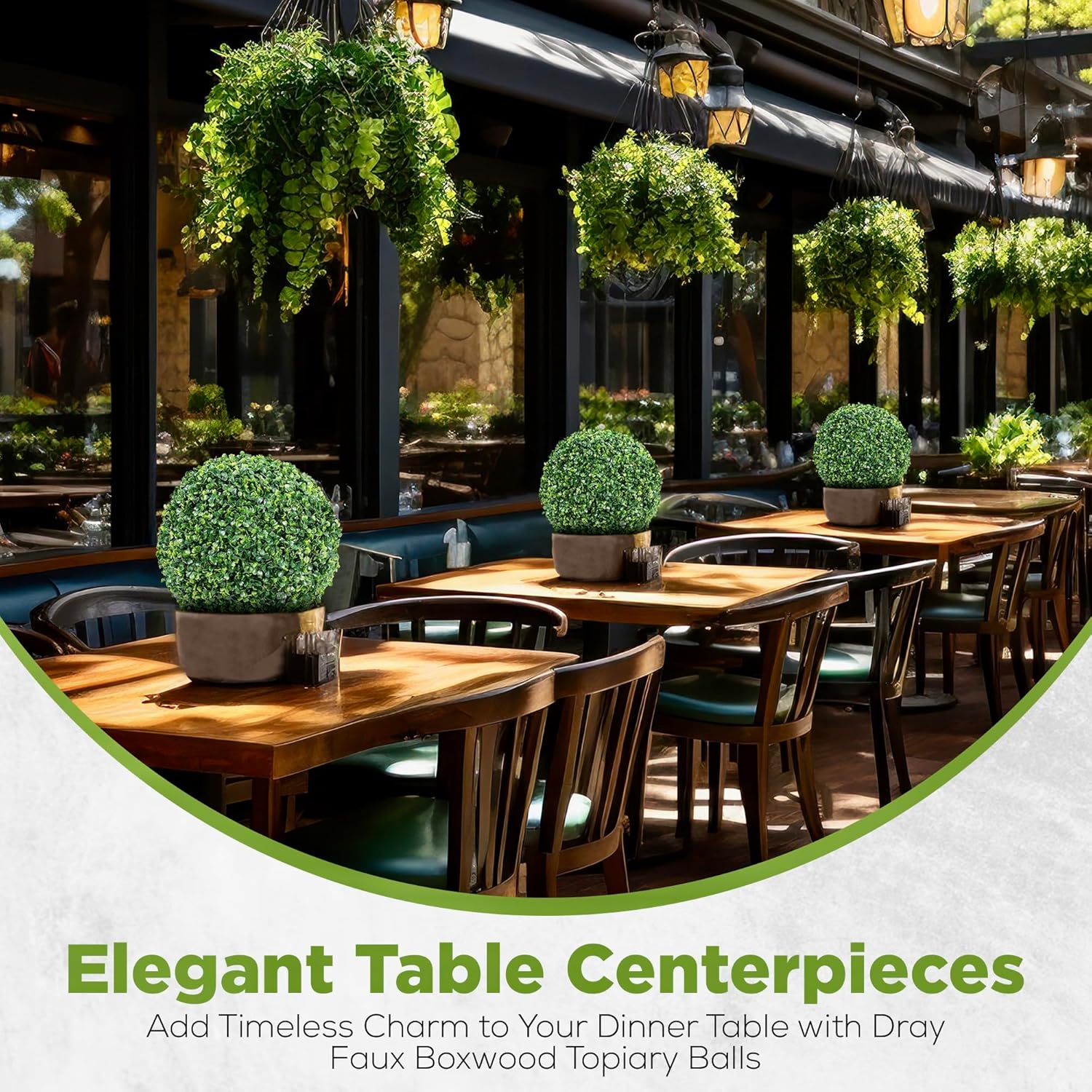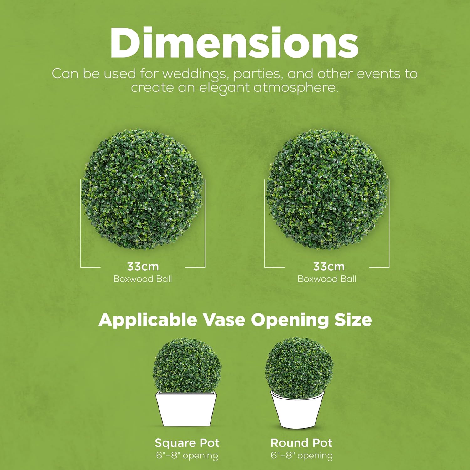 DRAY Premium 13" Faux Boxwood Balls – Set of 2 Artificial Topiary Spheres for Outdoor & Indoor Use – Realistic, UV-Resistant, Weatherproof Decorative Greenery – Check Measurements