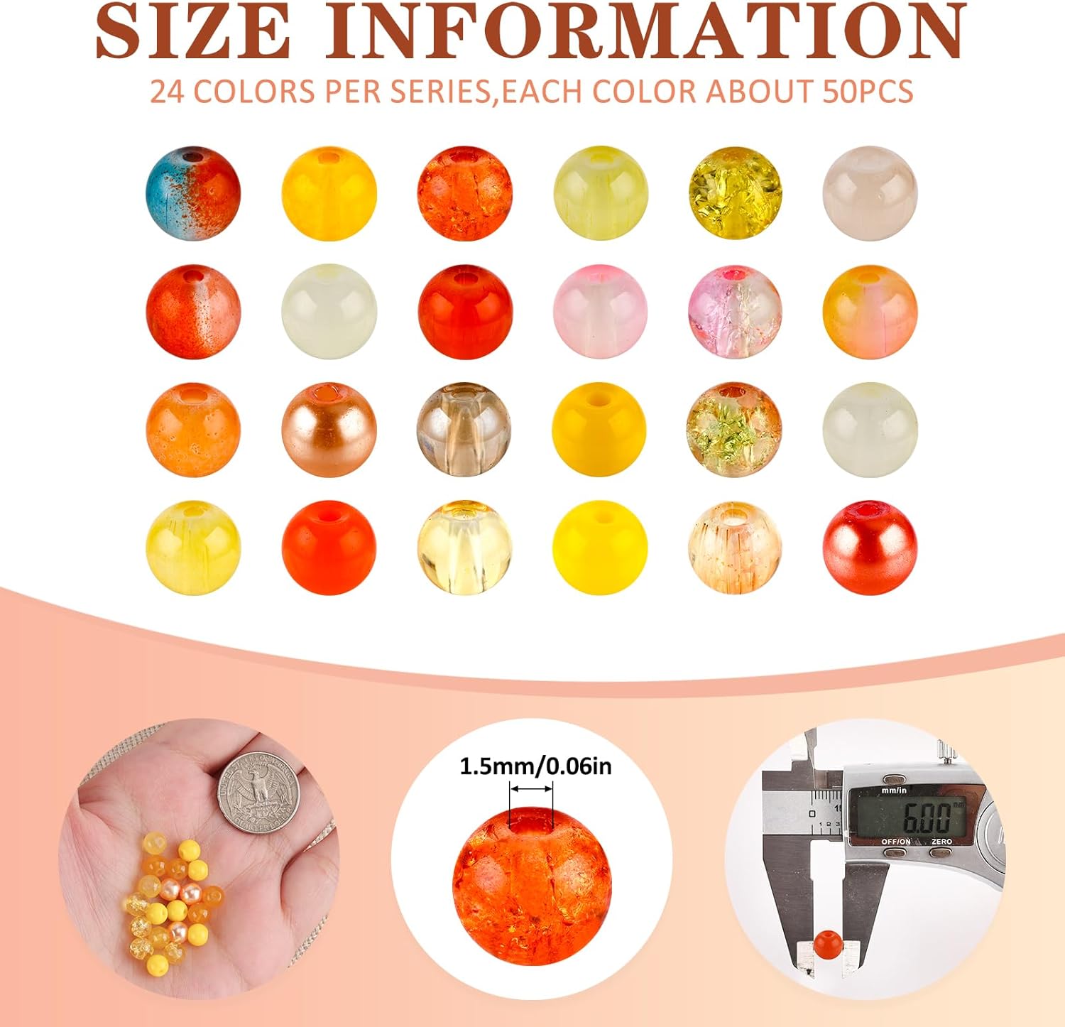 - 【Vibrant Colors】:These 6mm round glass beads are made of high-quality glass material and available in 24 colors. The round glass beads look jade texture, great for decorating your craft.