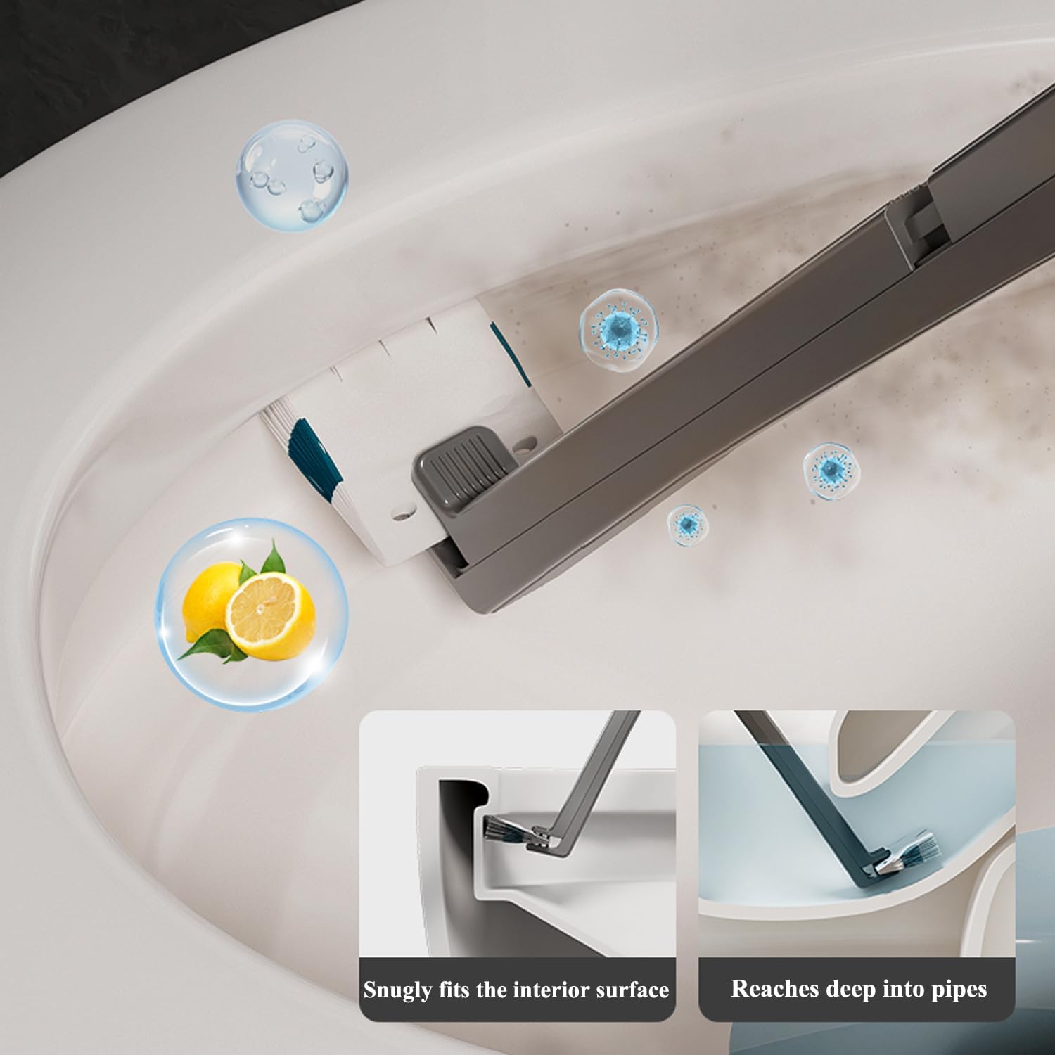 - 【Shark Tooth Grip for Unshakeable Hold】The shark-tooth clamp secures the brush head tightly, even when applying pressure. No slips, no leaks—just a rock-solid grip to scrub every curve of your toilet bowl.
