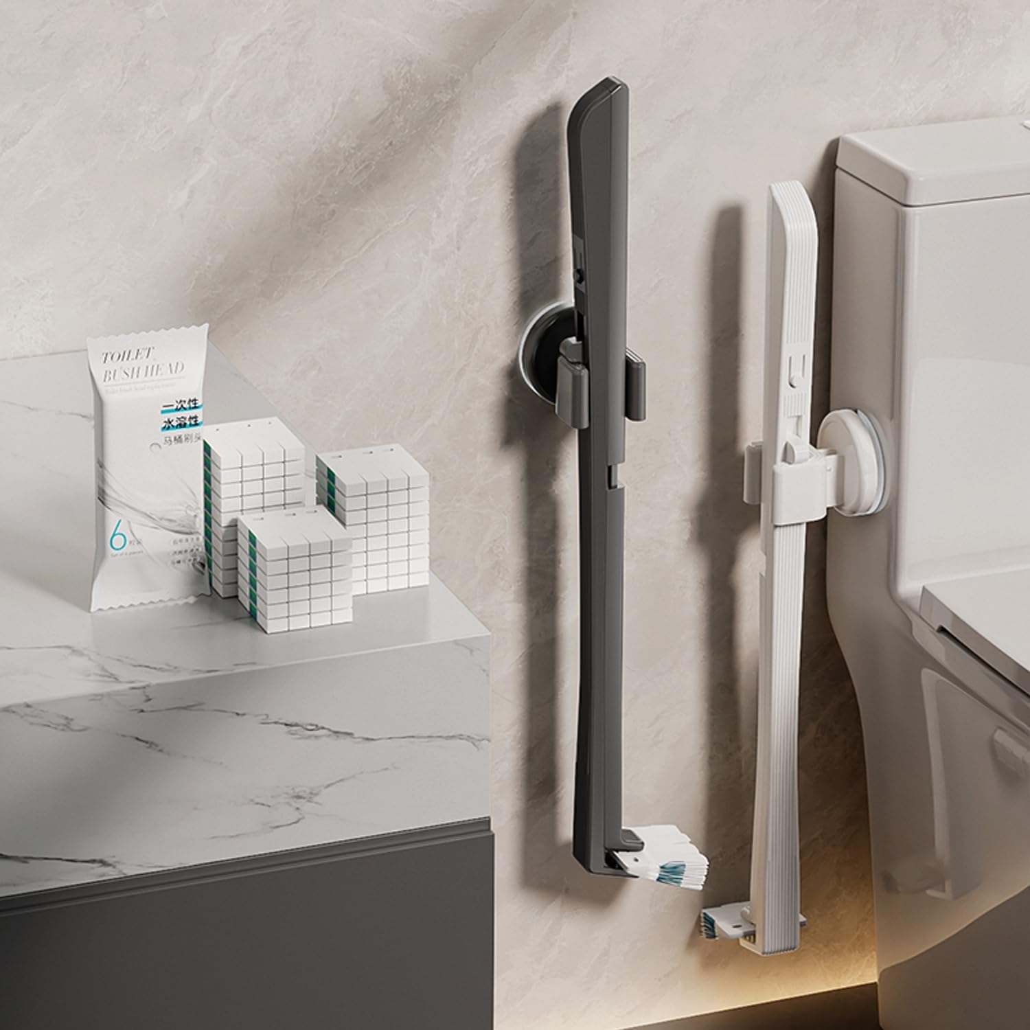 Disposable Toilet Brush with Replaceable Heads, Wall-Mounted Holder, Hygienic Bathroom Cleaning Tool (Dark Grey Toilet Brush + 36 Refills)